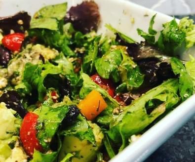 My family calls this salad Aunt Kathleen’s Salad because she would always make a salad similar to this when we came over for dinner. She would alter the veggies she put in…